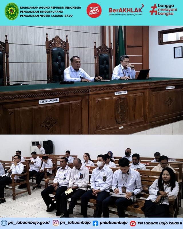 Kegiatan ini dipimpin langsung oleh Ketua PN Labuan Bajo dan Wakil Ketua dihadiri oleh seluruh jajaran Hakim, Pejabat Struktural, Fungsional, serta staf.