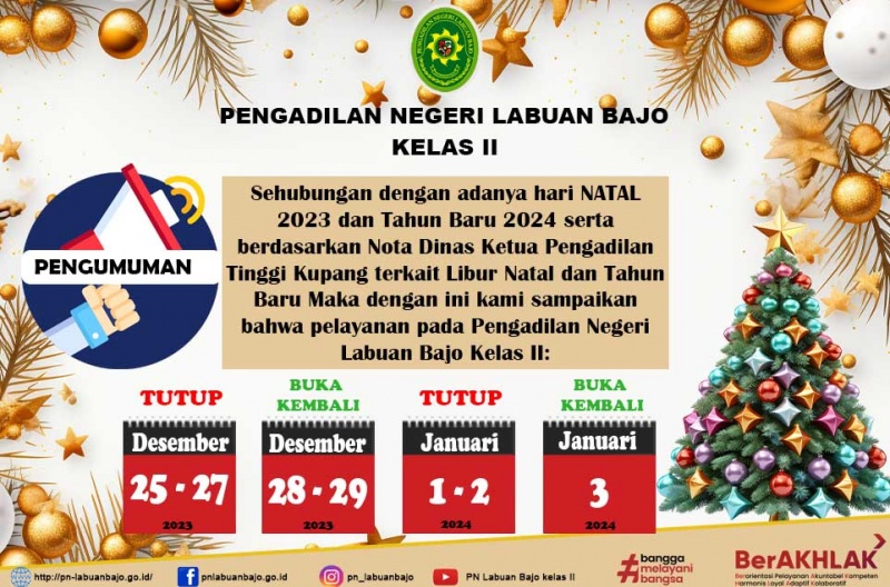 Pengumuman Libur Natal dan Tahun Baru